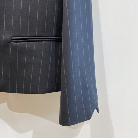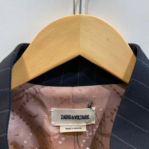 Stunning Zadig & Voltaire navy blue pinstripe blazer, straight-cut, raised collar, no buttons Condition: Excellent  Size: 42 Material: 64% Poly...