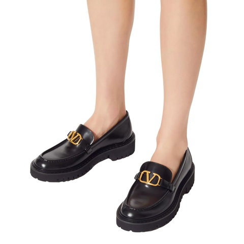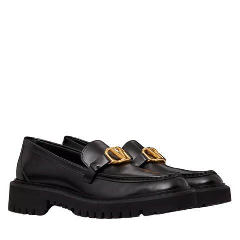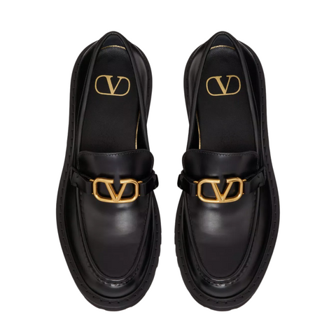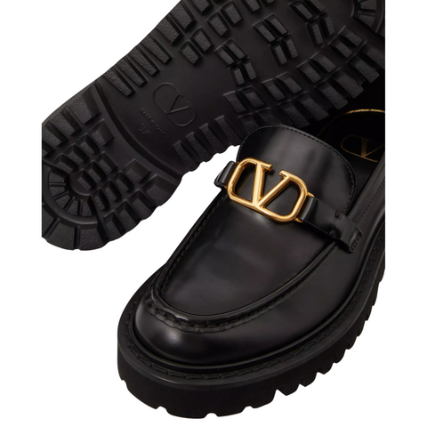 Black Calfskin VLogo Loafers 40