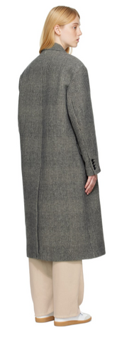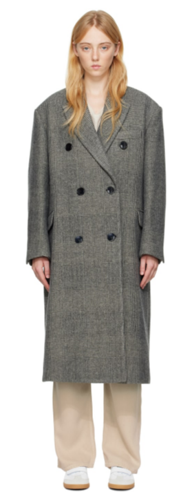 Virgin wool houndstooth coat. · Peaked lapel· Double-breasted button closure· Welt pocket at chest· Flap pockets at waist· Central vent at back hem...