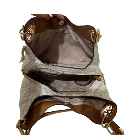 The Michael Kors Monogram Shoulder Bag is the perfect blend of luxury and everyday functionality. Featuring the brand's signature MK monogram print...