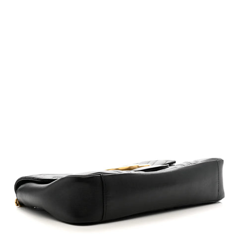 This shoulder bag is crafted of quilted calfskin leather in black. It features antiqued gold chain shoulder straps with a black leather shoulder pa...