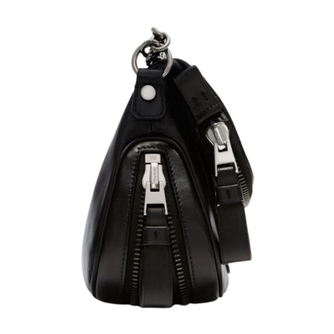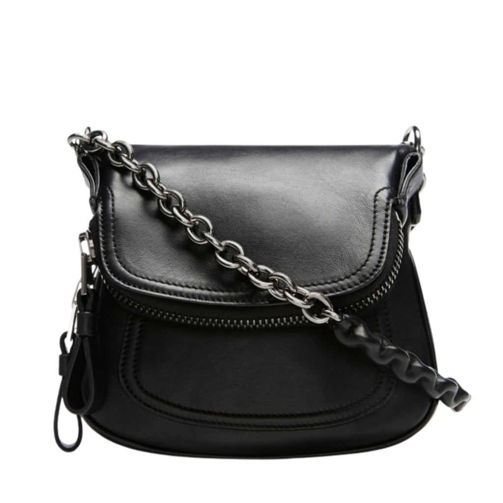 This chic crossbody bag is crafted of luxuriously textured calfskin leather in black. The bag features a leather crossbody strap with brass hardwar...