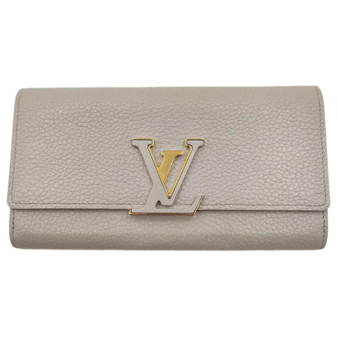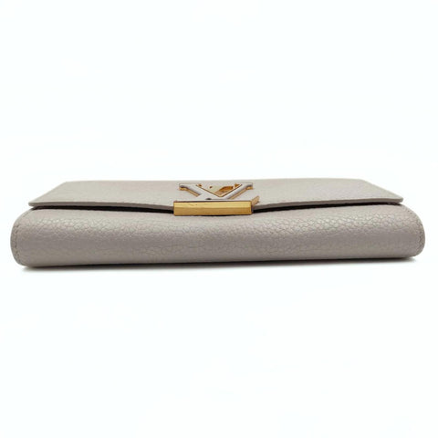This chic wallet is crafted of fine Louis Vuitton monogram embossed leather in grey. The wallet features a front flap with an LV logo in polished g...