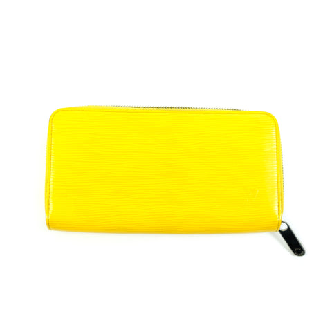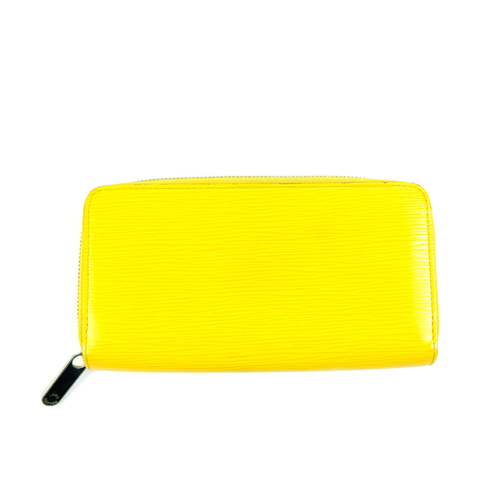 This stylish wallet is crafted of Louis Vuitton signature textured epi leather in yellow. The wallet has a three sided zipper and opens to a yello...