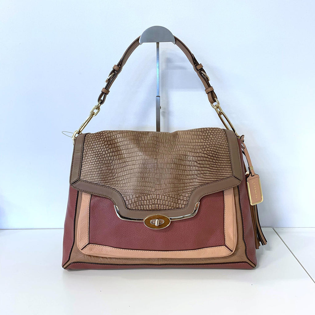 Dusty Rose Alligator Print Shoulder Bag