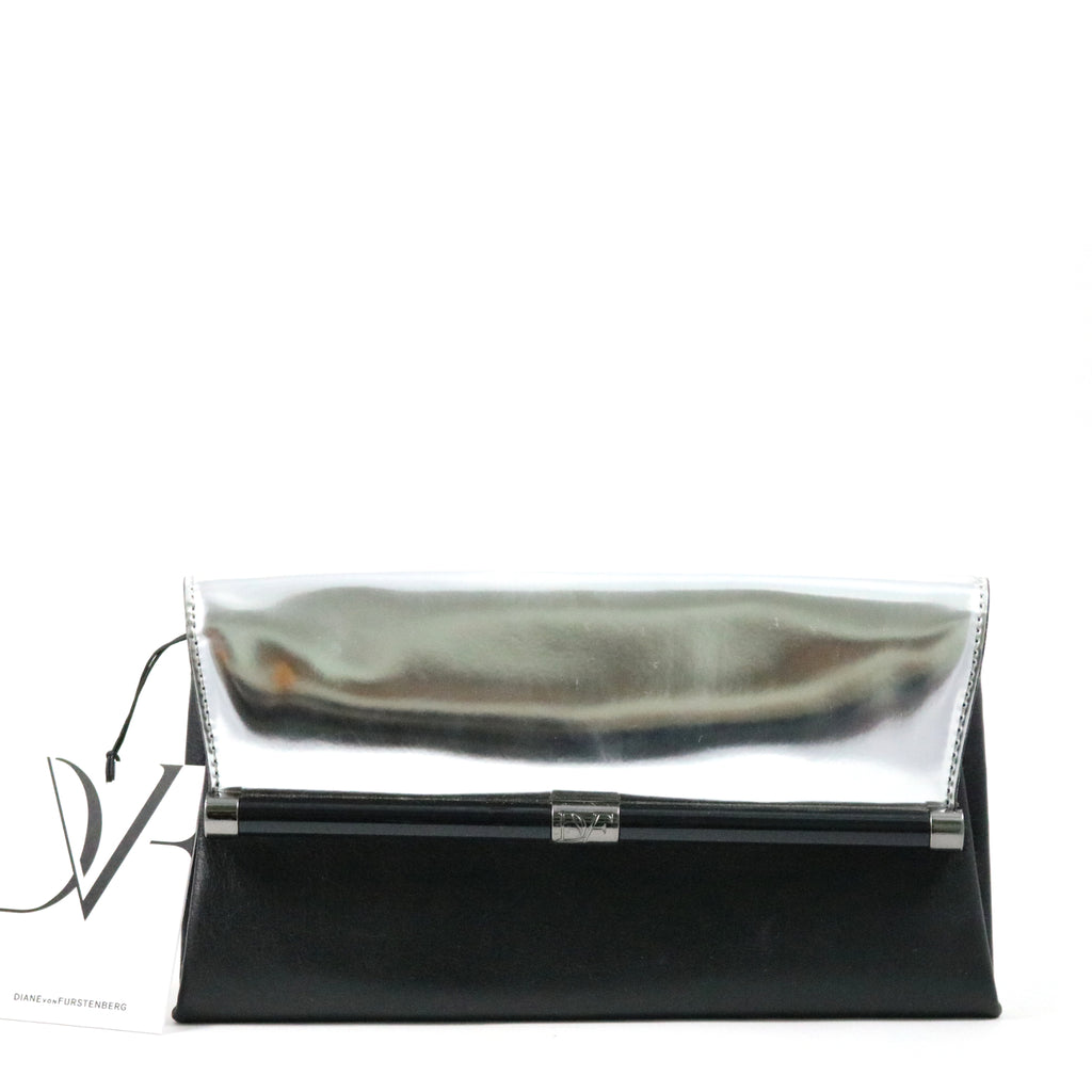 A textural mix of smooth, mirror-finished metallic and grained leathers composes this cosmopolitan clutch that's perfect for a night out on the to...