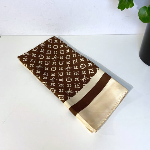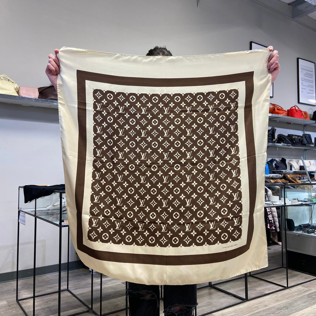 This 100% silk scarf features the traditional Louis Vuitton monogram. Enjoy this is an excellent scarf to be worn in many stylish ways, from Louis ...