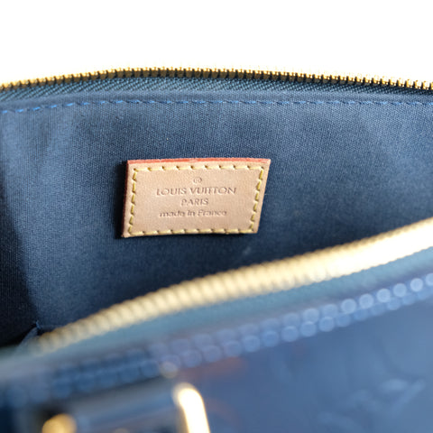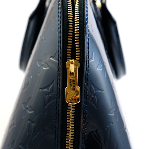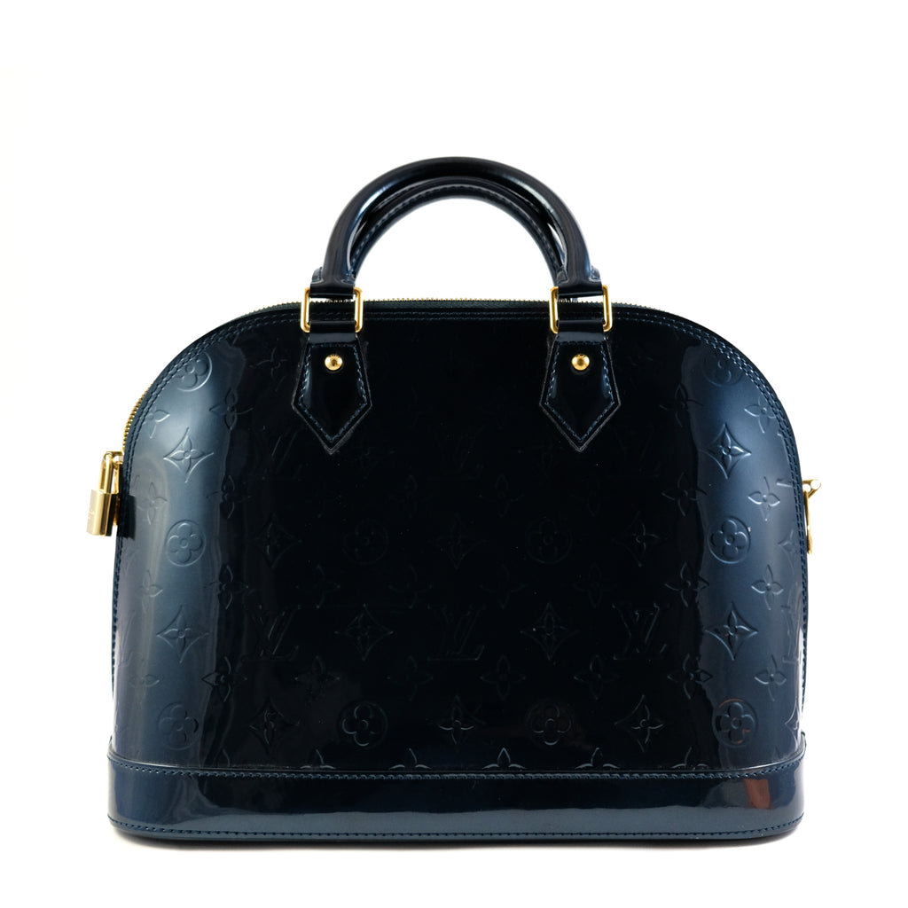 This sleek stylish tote is crafted of Louis Vuitton monogram embossed Vernis patent leather. The bag has smooth rolled leather top handles and poli...