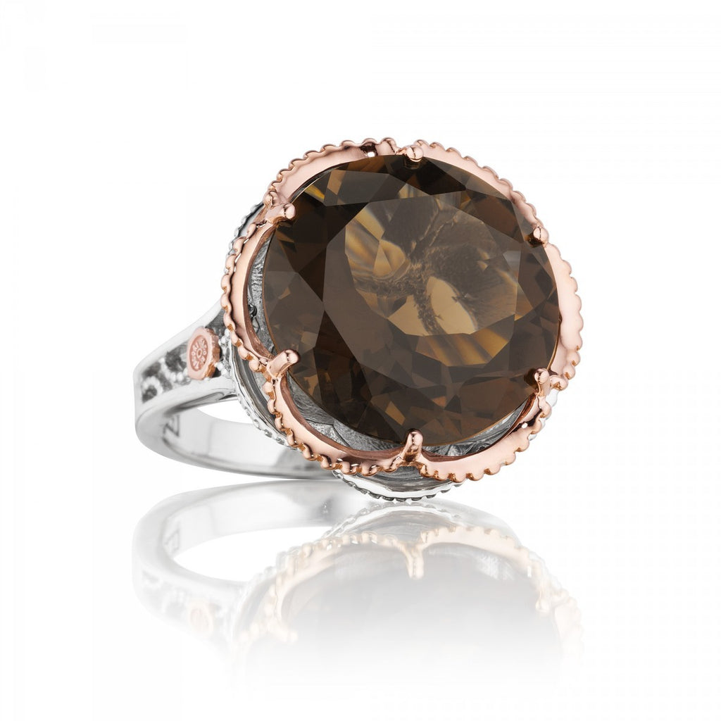 This delightful chocolate hued Smokey Quartz cocktail ring is set within a milgrain detailed piece for a burst of color that is understated, yet ey...