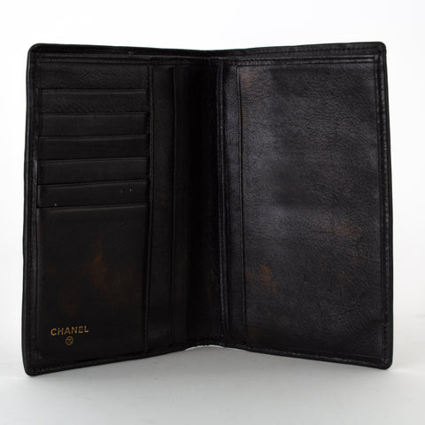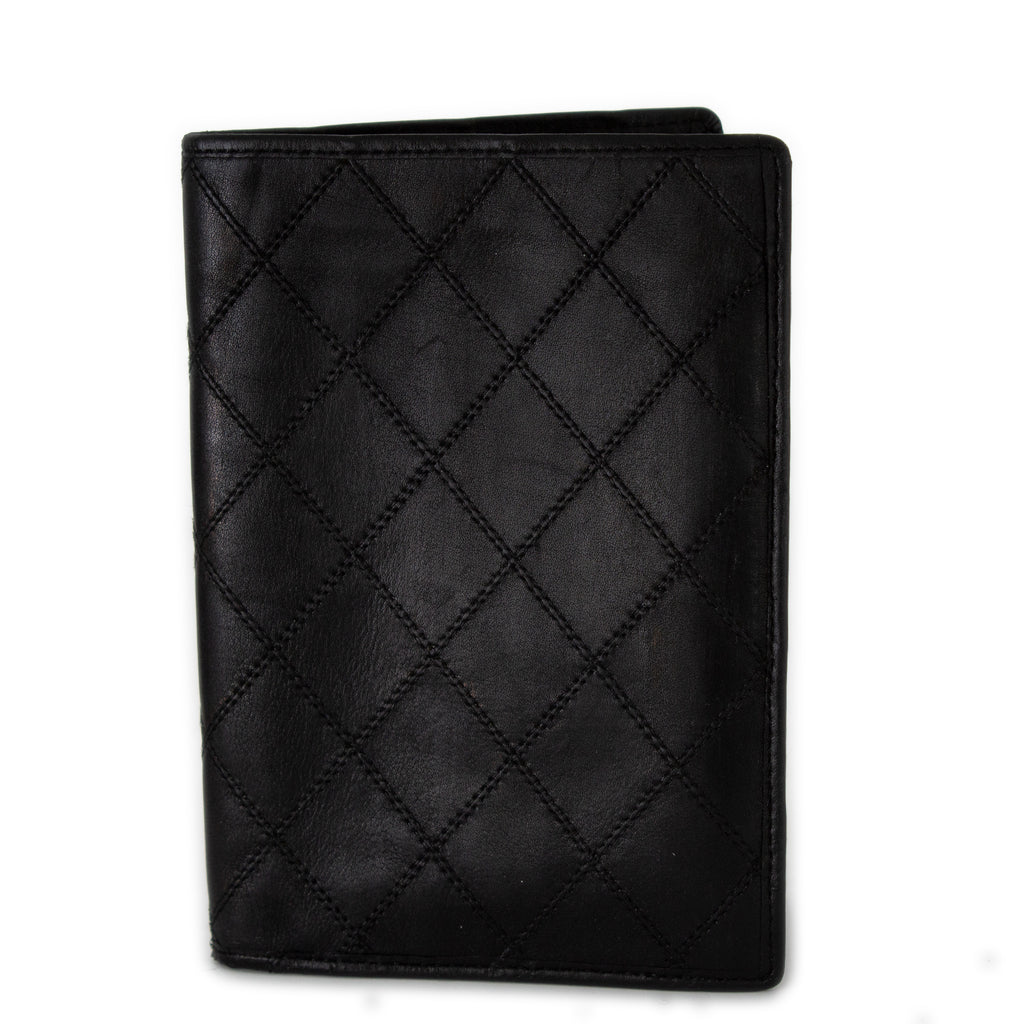 This is a fabulous wallet crafted of double stitched diamond patterned lambskin leather in black. Suitable for any gender. It opens to a matching s...