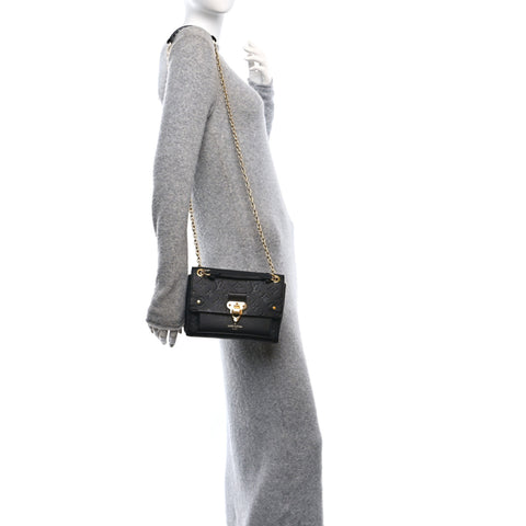 This beautiful flap-style shoulder bag is crafted of Louis Vuitton monogram embossed leather in black. The bag features brass chain link shoulder s...