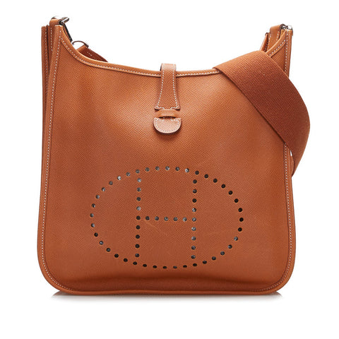 This stylish messenger bag is crafted of fine calfskin leather in brown and features a matching canvas shoulder strap, palladium silver hardware, a...