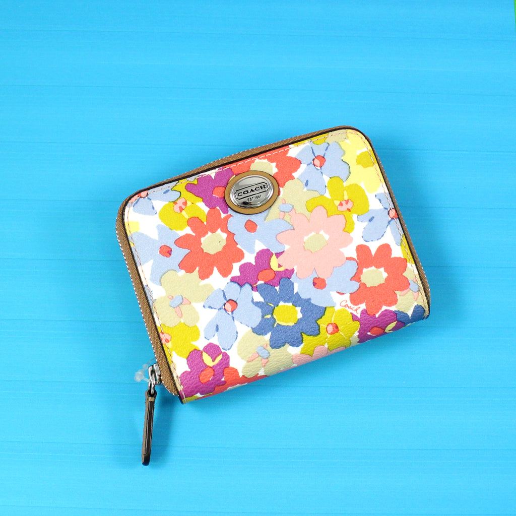 Floral print leather multicolor wallet with silver-tone hardware, zip and snap closure, leather interior, 13 interior card slots, and 1 interior sl...