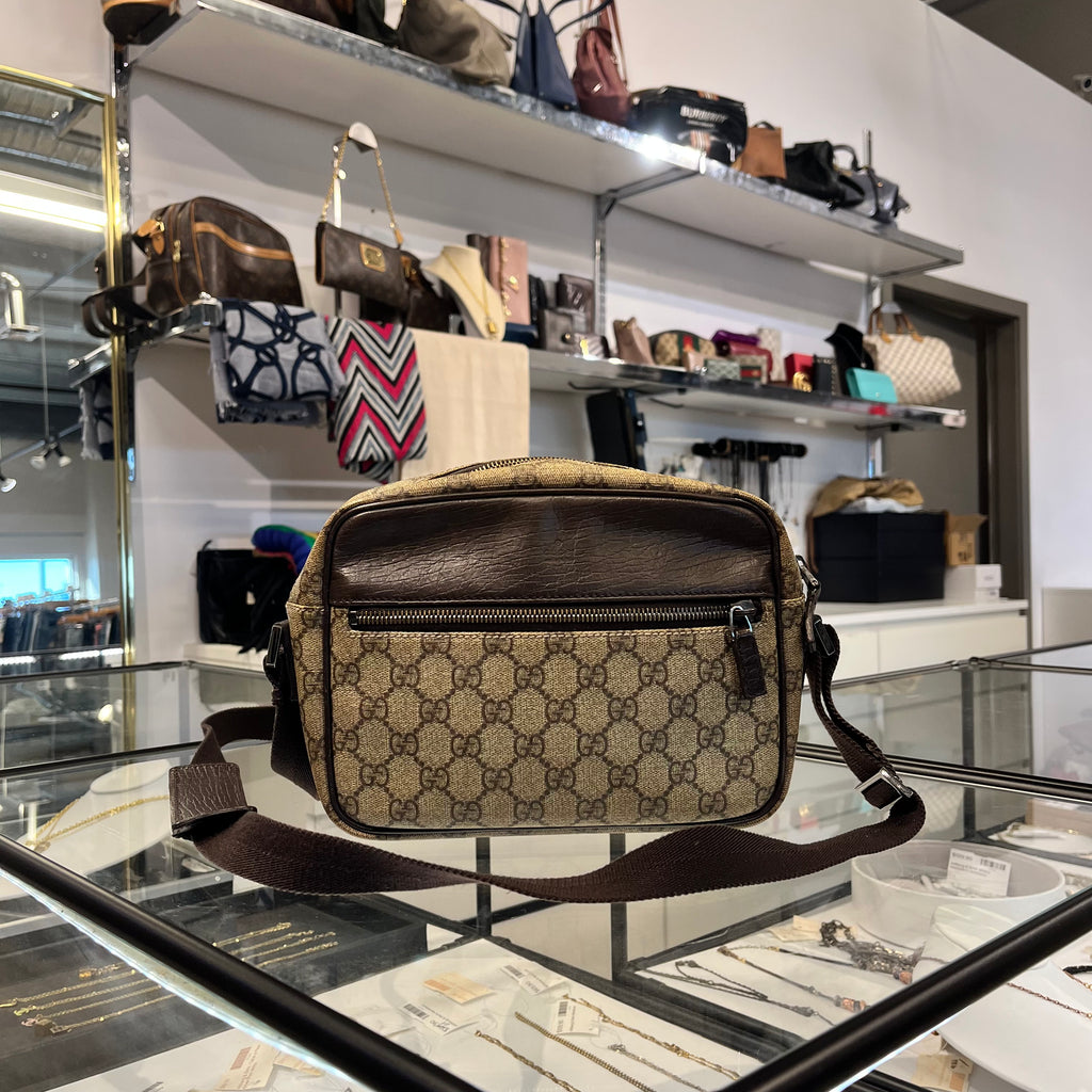 This stunning crossbody bag is crafted of Gucci GG Coates canvas. The bag features a long adjustable strap and chocolate brown leather trim. The to...