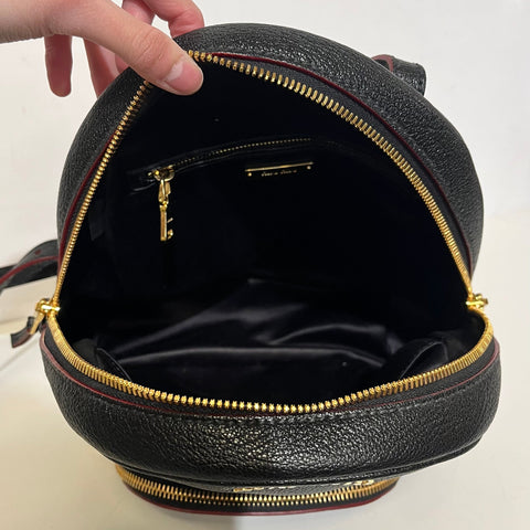 This stylish backpack is crafted of beautifully grained leather in black. This backpack features a small leather handle and adjustable shoulder str...