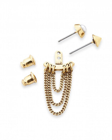 Lezark Ear Jackets Stud Earrings Gold-Tone