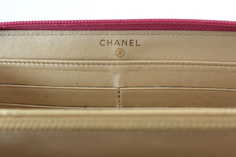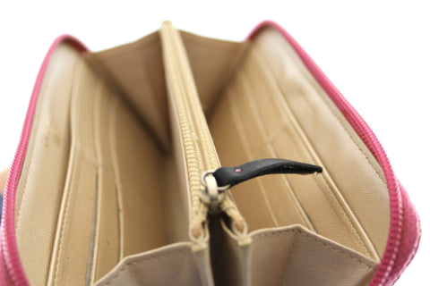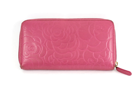 Lambskin Camellia Embossed Zip Around Large Gusset Wallet
