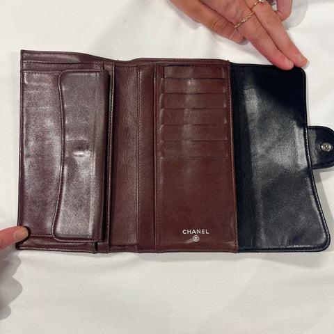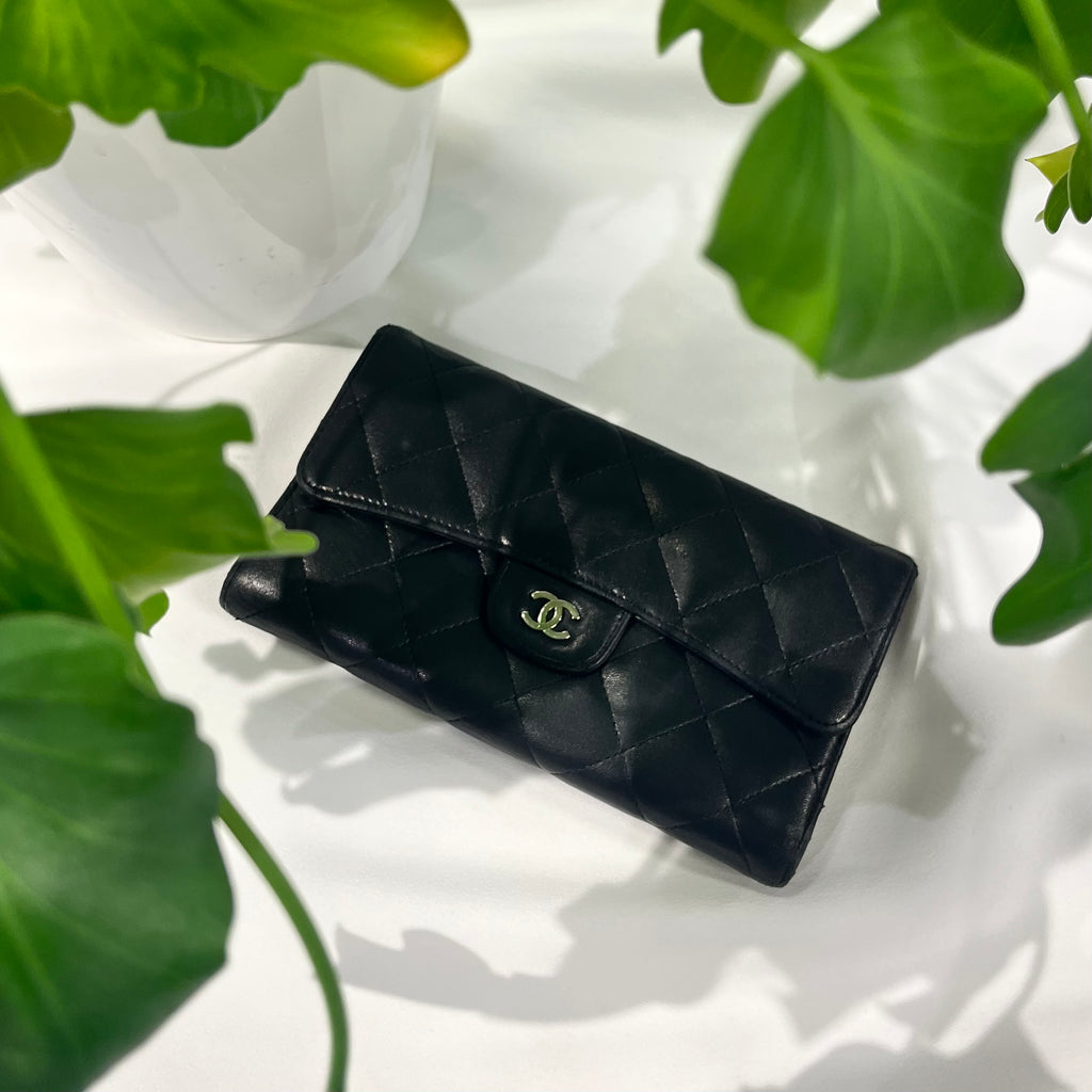 Lambskin Quilted Large Flap Wallet Black