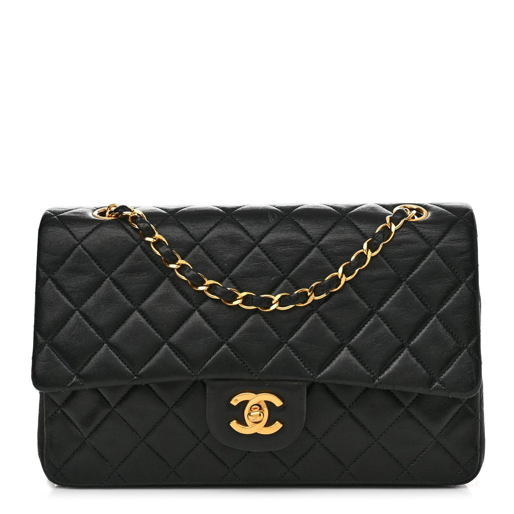 A great treasure from circa 2000-2002! This iconic model is finely composed of supple diamond quilted lambskin leather in black. The shoulder bag f...