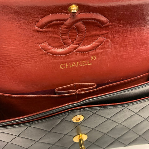 A great treasure from the '80s Chanel! This iconic model is finely composed of supple diamond quilted lambskin leather in black. The shoulder bag ...