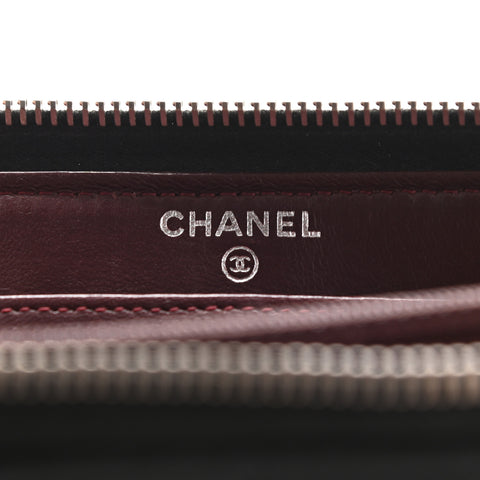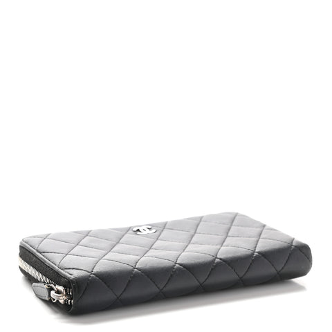 This chic clutch wallet is crafted of diamond quilted lambskin leather with a small Chanel CC logo in silver. The silver zipper opens to a partiti...