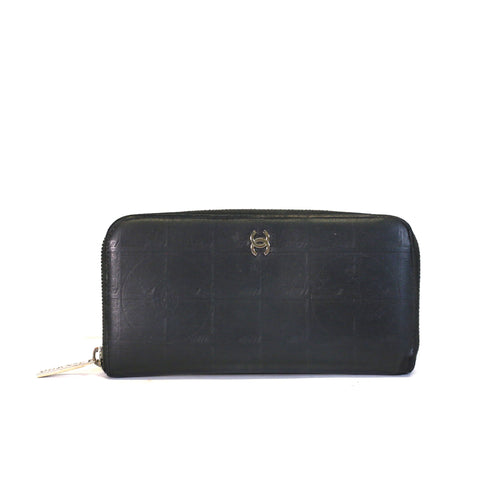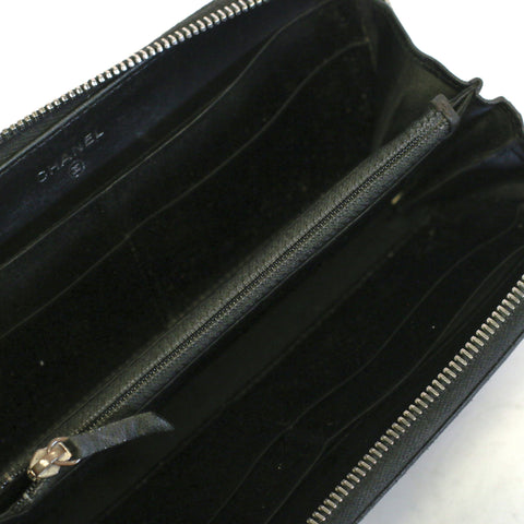From the 2006-2008 collection, this wallet is crafted of pressed leather with CC pattern. It features a small Chanel CC logo in silver. The zipper...