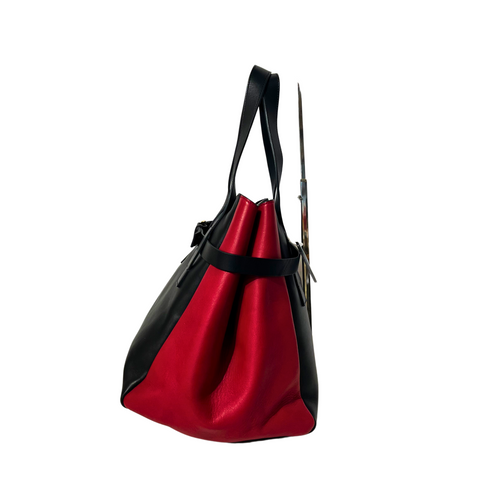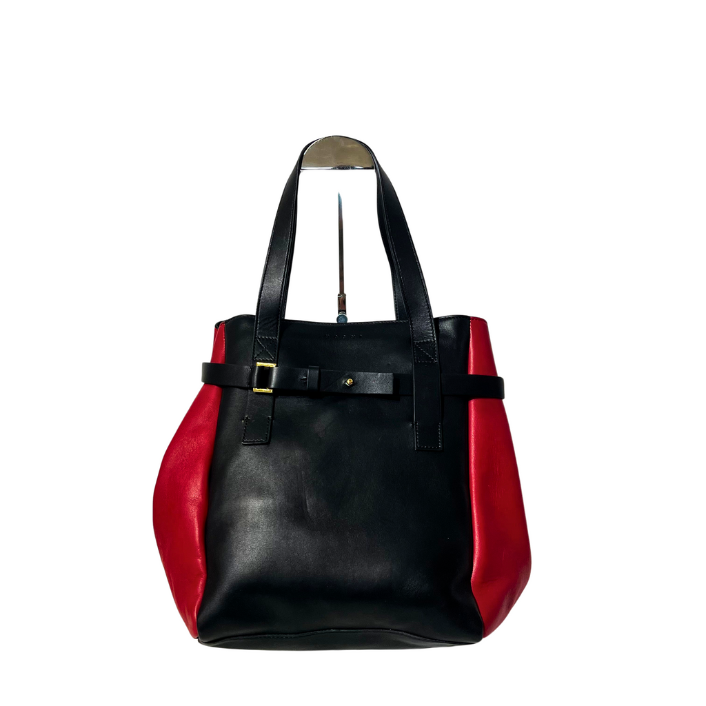 This stylish tote is beautifully crafted of high quality leather. The shoulder bag features  black leather strap handles and gold tone hardware. Th...