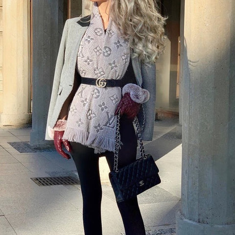 This stylish warm scarf is crafted of 94% wool and 6% silk in grey. Featuring a signature monogram motif and a fringe trim. This wool and silk scar...