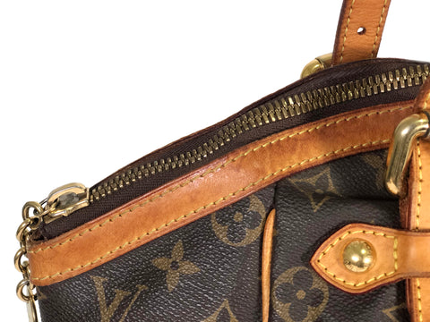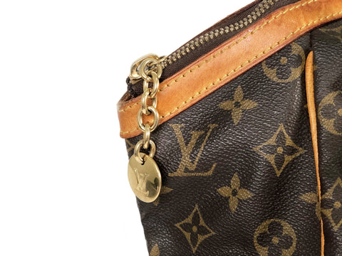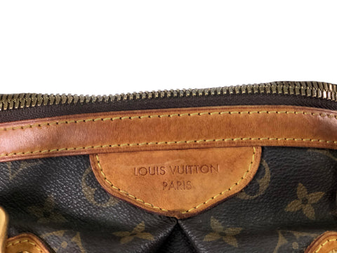 This stylish tote is finely crafted of pleated Louis Vuitton monogram on toile canvas. The shoulder bag features signature natural vachetta leather...