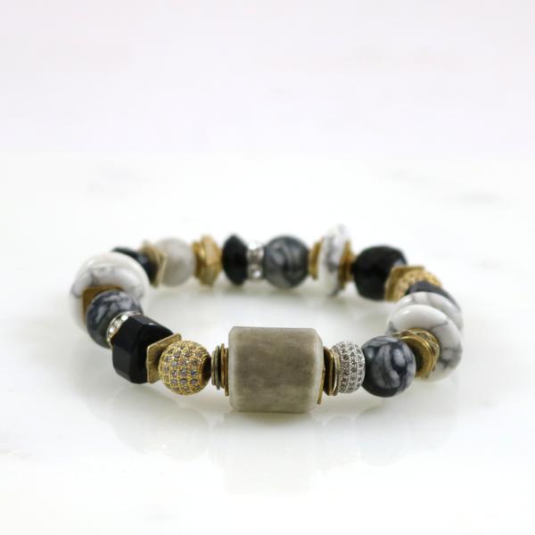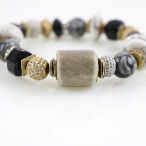 Mixed Stones with Gold Pave Ball Stretch Bracelet
