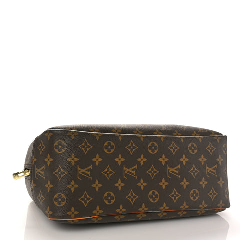 This classic tote bag is finely crafted of classic Louis Vuitton monogram on toile canvas. The bag features a full exterior pocket, vachetta cowhid...