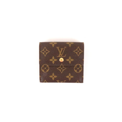 This stylish compact wallet is crafted of Louis Vuitton monogram coated canvas. The wallet opens with a flap to a compact interior with card slots...