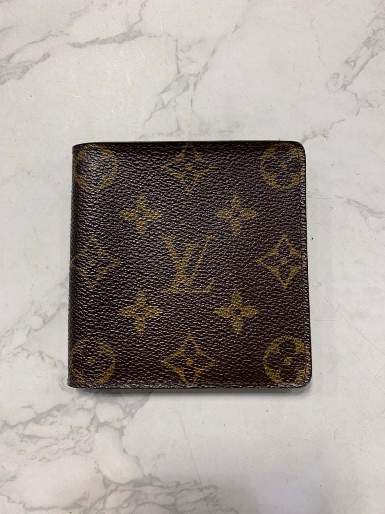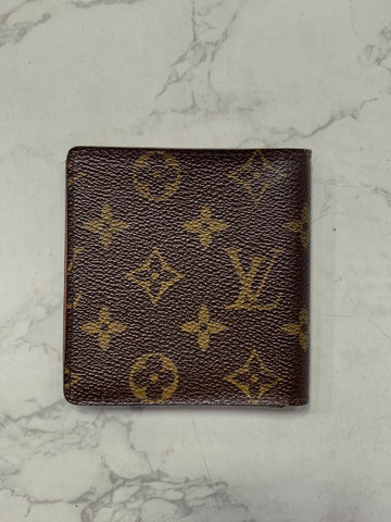 This stylish compact unisex wallet is finely crafted of classic Louis Vuitton monogram coated canvas. The wallet opens to a terra-cotta colored cr...