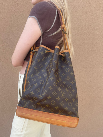 This shoulder bag features signature vachetta leather including a full base, an adjustable shoulder strap, a cinch cord, and polished brass hardwar...