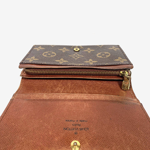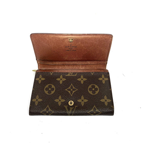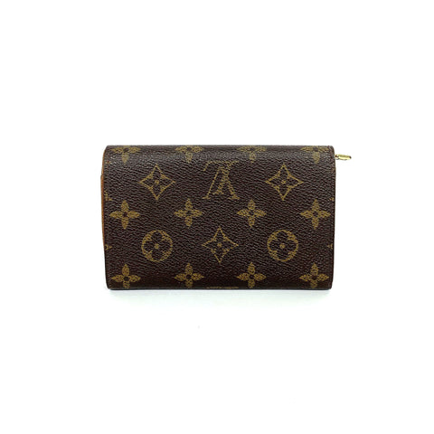 This classic wallet is crafted of traditional monogram coated canvas with a frontal envelope half flap. It opens with a snap to a terra cotta cros...