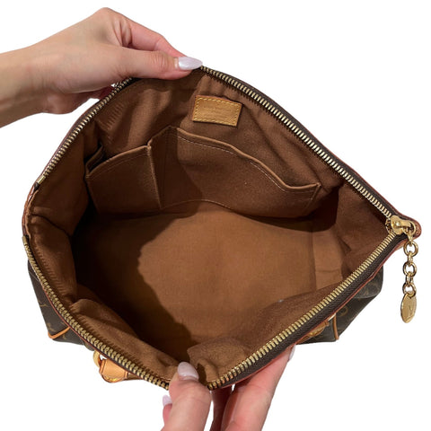 This stylish tote is finely crafted of signature Louis Vuitton monogram on coated canvas. This handbag features classic vachetta cowhide rolled lea...