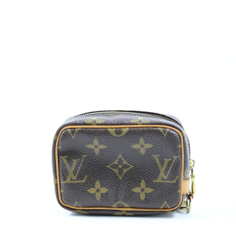 This petite accessory case crafted of classic Louis Vuitton monogram on toile canvas. This has complimentary signature vachetta cowhide leather pip...