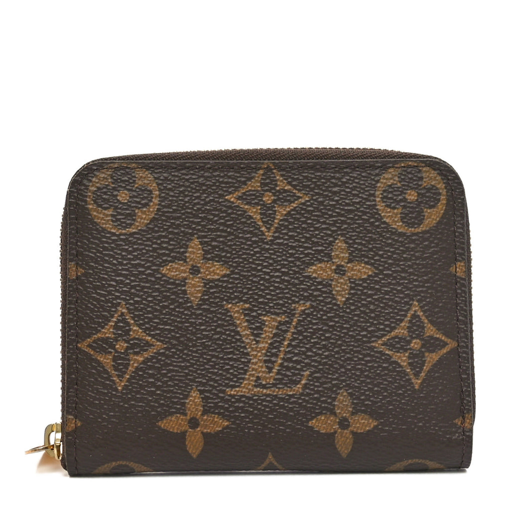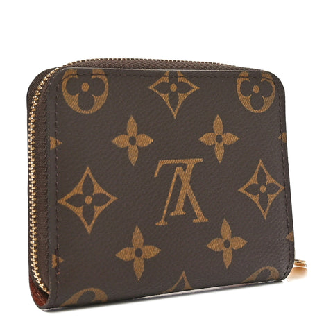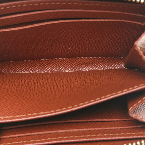 This chic wallet is crafted of traditional Louis Vuitton monogram toile canvas. The gold 3/4 zipper opens to a cross-grain terra cotta leather inte...