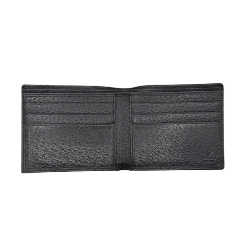This Gucci bifold wallet is crafted from black canvas and finished with a leather lined interior. The compact silhouette opens to reveal interior p...