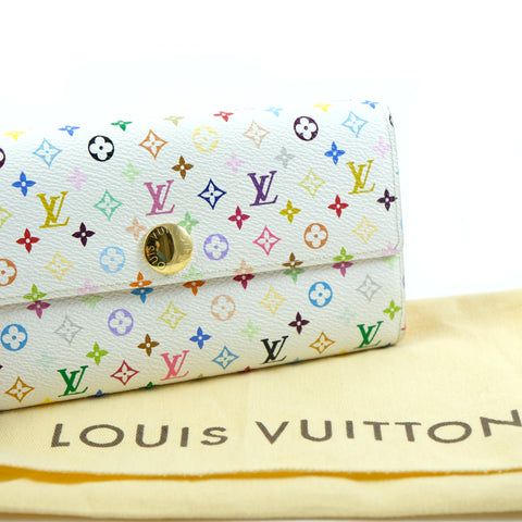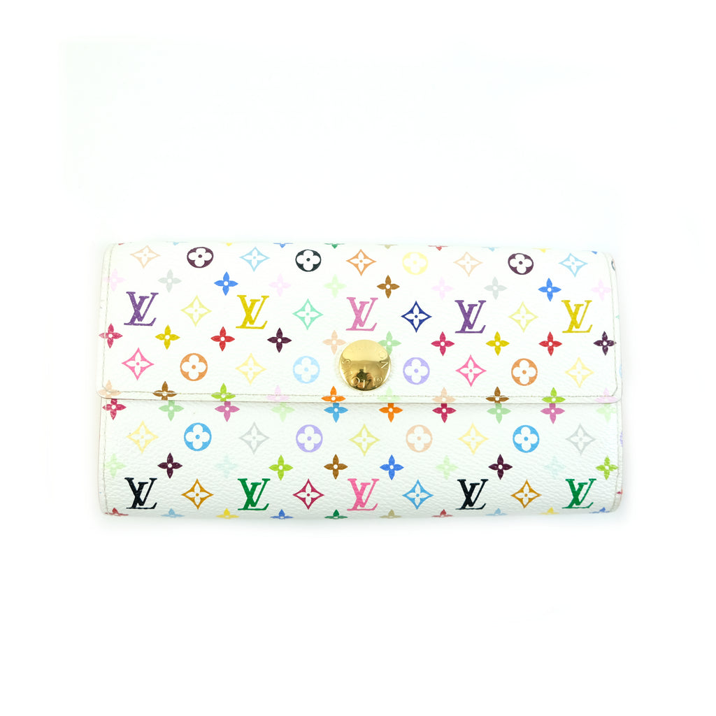 This Louis Vuitton White Monogram Multicolore Sarah Wallet is the most elegant way to organize your essentials like your bills, currency, credit ca...