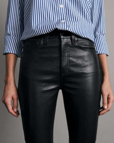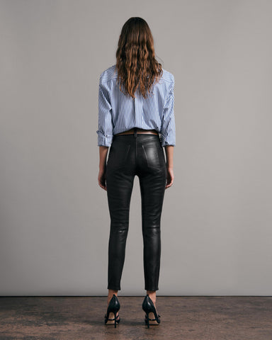 A high-rise skinny pant with a cropped leg. Crafted from high-quality leather, it's finished with a classic donut shank button closure. Instant ico...