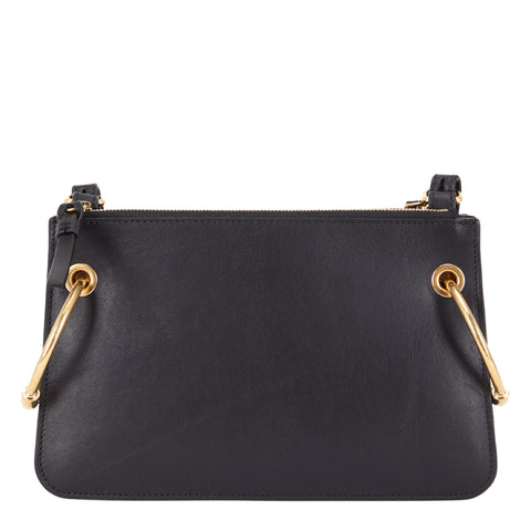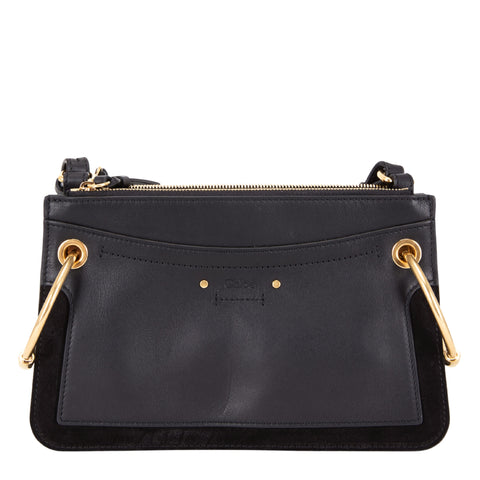 This stylish crossbody is crafted of black calfskin leather with suede accents for a rich, textured finish. The bag features a detachable and adjus...