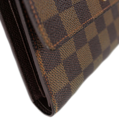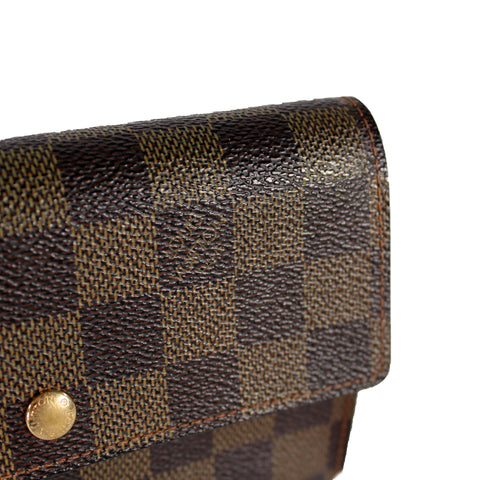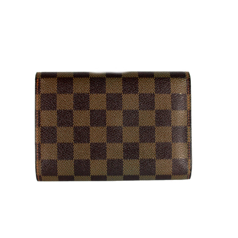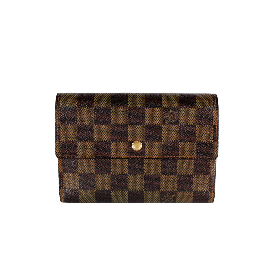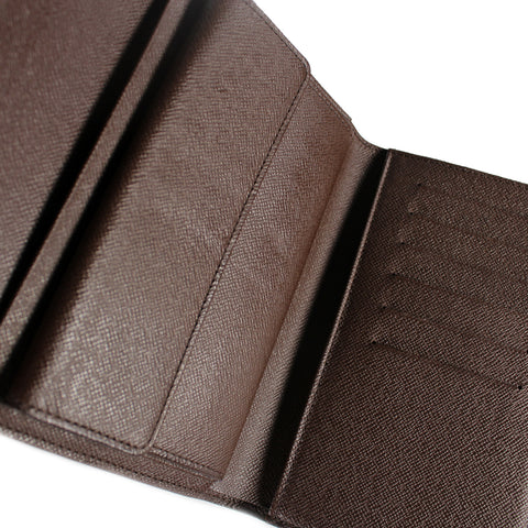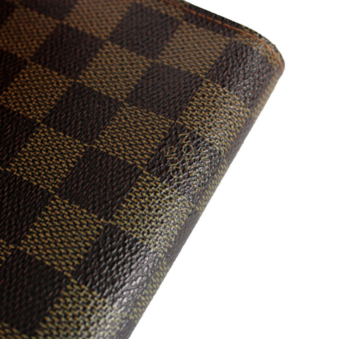 Suitable for any gender, this wallet is crafted of Louis Vuitton damier printed toile canvas. The front flap opens to a mocha brown cross grain lea...