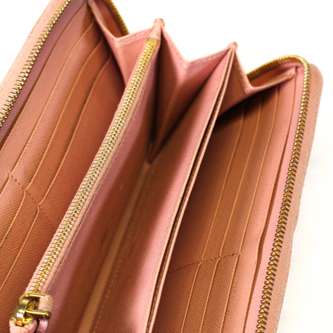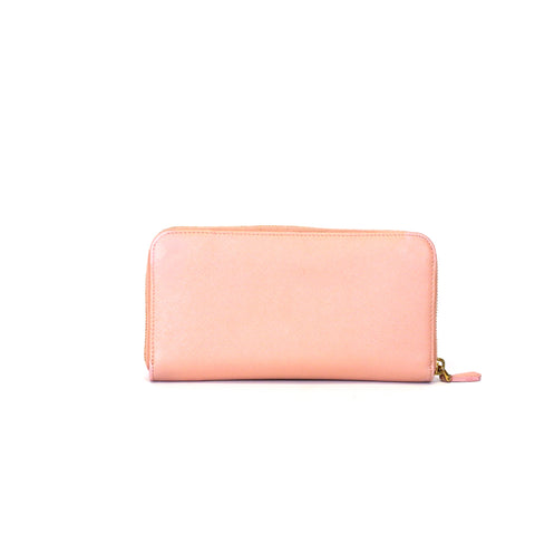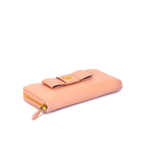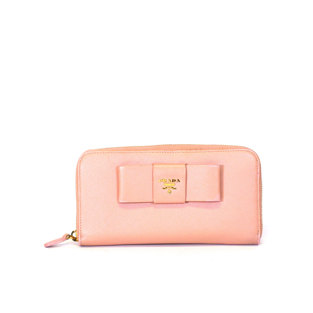 This stylish wallet is finely crafted of signature Saffiano cross grain leather in pastel pink. There is a structured bow accent and a three sided...