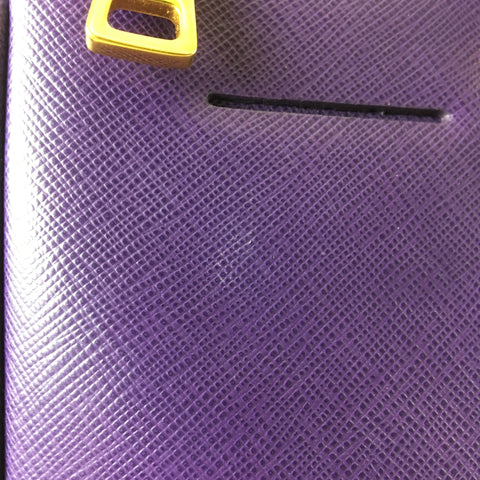 This lovely tote is crafted of cross-grain saffiano leather in purple. The tote features rolled leather top handles, and a hanging key ring with a ...