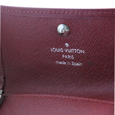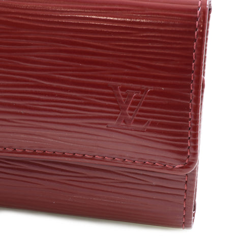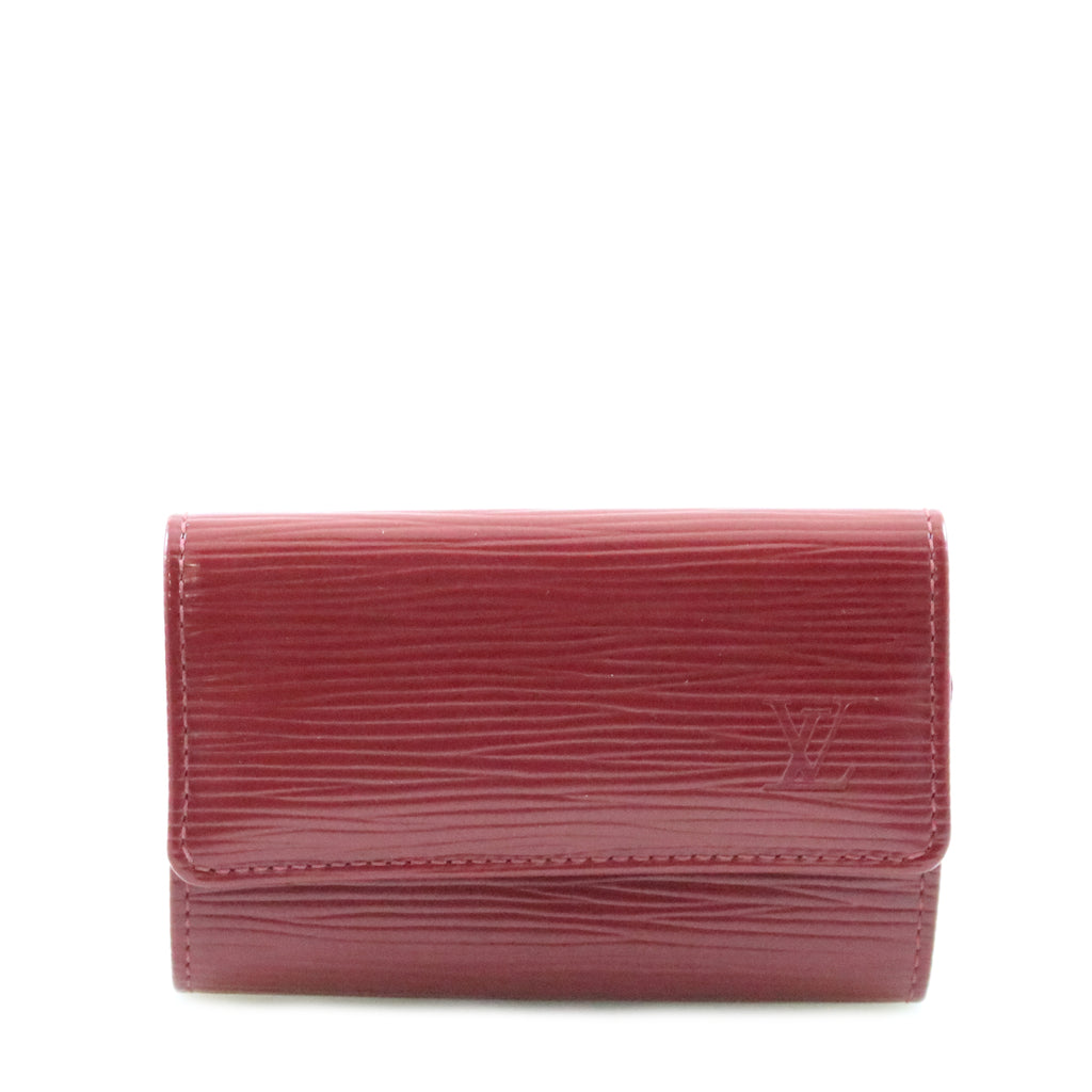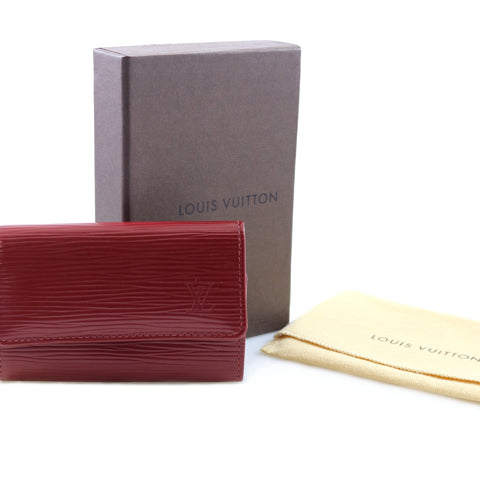 This stylish key holder is crafted of Louis Vuitton signature textured epi leather. It features a flap with a silver snap closure that opens to a l...