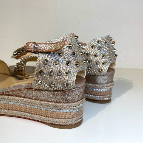 These fun Christian Louboutin Studded Sandals are perfect for summer!  Louboutin's trademark glossy red soles give an instant stamp of fashion exc...