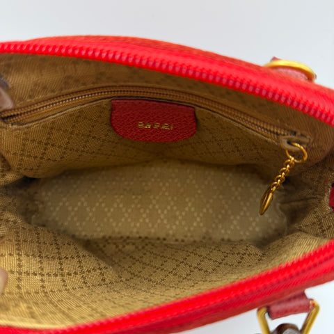 This vintage handbag is crafted from rich red suede, accented with bamboo detailing and refined gold-tone and tonal hardware for a distinct...
