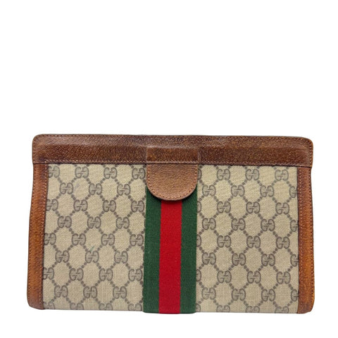 This Gucci Portfolio is crafted in classic neutral GG canvas, accented with refined leather trim for a timeless look. The structured silhou...