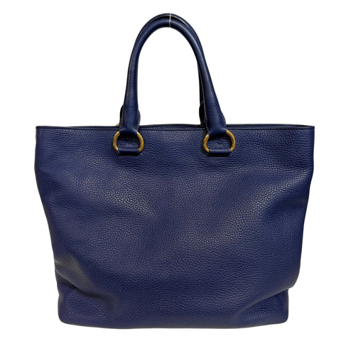 This stylish tote is crafted of finely textured vitello daino calfskin leather in dark blue. The shoulder bag features rolled leather top handles w...